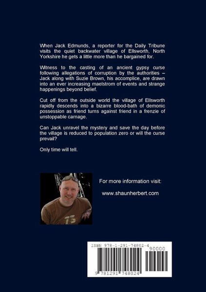 When Jack Edmunds, a reporter for the Daily Tribune visits the quiet backwater village of Ellsworth, North Yorkshire he gets a little more than he bargained for. Witness to the casting of an ancient gypsy curse following allegations of corruption by the authorities - Jack along with Suzie Brown, his accomplice, are drawn into an ever increasing maelstrom of events and strange happenings beyond belief. Cut off from the outside world the village of Ellsworth rapidly descends into a bizarre blood-bath of demonic possession as friend turns against friend in a frenzie of unstoppable carnage. Can Jack unravel the mystery and save the day before the village is reduced to population zero or will the curse prevail? Only time will tell.