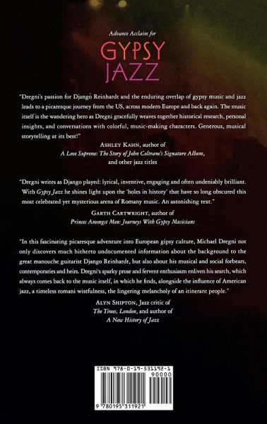 Of all the styles of jazz to emerge in the twentieth century, none is more passionate, more exhilaratingly up-tempo, or more steeped in an outsider tradition than Gypsy Jazz. And there is no one more qualified to write about Gypsy Jazz than Michael Dregni, author of the acclaimed biography, Django. A vagabond music, Gypsy Jazz is played today in French Gypsy bars, Romany encampments, on religious pilgrimages--and increasingly on the world's greatest concert stages. Yet its story has never been told, in part because much of its history is undocumented, either in written form or often even in recorded music. Beginning with Django Reinhardt, whose dazzling Gypsy Jazz became the toast of 1930s Paris in the heady days of Josephine Baker, Picasso, and Hemingway, Dregni follows the music as it courses through caravans on the edge of Paris, where today's young French Gypsies learn Gypsy Jazz as a rite of passage, along the Gypsy pilgrimage route to Les Saintes-Maries-de-la-Mer where the Romany play around their campfires, and finally to the new era of international Gypsy stars such as Biréli Lagrène, Boulou Ferré, Dorado Schmitt, and Django's own grandchildren, David Reinhardt and Dallas Baumgartner. Interspersed with Dregni's vivid narrative are the words of the musicians themselves, many of whom have never been interviewed for the American press before, as they describe what the music means to them. Gypsy Jazz also includes a chapter devoted entirely to American Gypsy musicians who remain largely unknown outside their hidden community. Blending travelogue, detective story, and personal narrative, Gypsy Jazz is music history at its best, capturing the history and culture of this elusive music--and the soul that makes it swing.