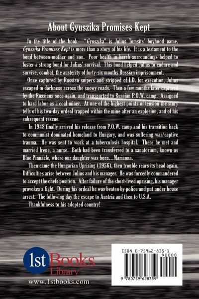 Gyuszika's biography carries a documented true story. The bond between the mother and son enables Julius' survival from the horror of combat, the austerery of 46 months Russian imprisonment, thern a tragic escape to the "free world."
