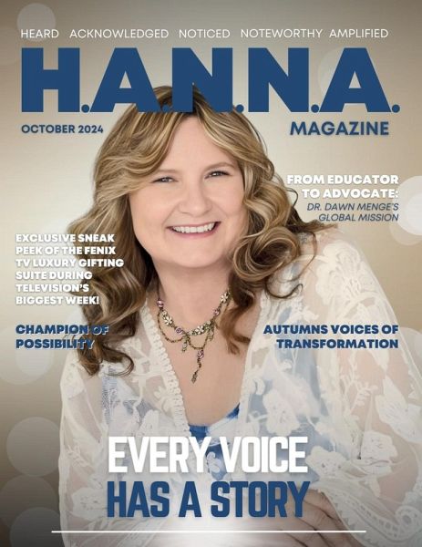 H.A.N.N.A. Magazine October 2024 Edition In the October 2024 edition of H.A.N.N.A. Magazine, we celebrate transformation, advocacy, and possibility. Our cover story, "From Educator to Advocate: Dr. Dawn Menge's Global Mission," showcases the inspiring journey of Dr. Menge, whose dedication to special education and global humanitarian efforts has made a lasting impact on children with cognitive delays. Her work is a testament to the power of education and her tireless advocacy for underserved communities around the world.This edition also features "Autumns Voices of Transformation," highlighting individuals who have embraced change to achieve personal growth, and "Champion of Possibility," which shines a spotlight on people who have defied all odds to create extraordinary lives. For a touch of Hollywood glamour, readers are treated to inside sneak peeks of The FENIX TV Luxury Gifting Lounge during Emmys Week, showcasing luxury brands and the excitement of awards season. This collection of powerful narratives and exclusive insights will inspire and uplift readers, reminding us all of the possibilities that arise when passion meets purpose.