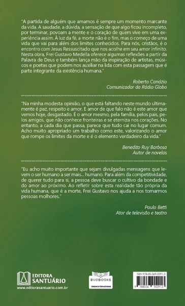 O que dizer a alguém que perdeu uma pessoa querida? Partindo de sua experiência pessoal no ministério da esperança, o autor abraça os que precisam de conforto. Inspirado por poemas, músicas e trechos das Sagradas Escrituras, o livro propõe reflexões cheias de fé e confiança para um dos momentos mais delicados da existência humana.