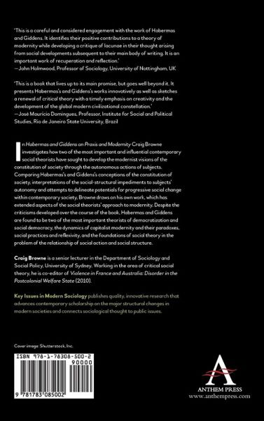 This major new contribution forms a constructive comparison of the social theories of Jürgen Habermas and Anthony Giddens that focuses on their approaches to modernity, their endeavours to develop new perspectives, and their critical rethinking of the modernist vision of an autonomous society.