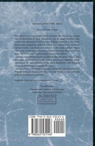 The relationship between civil society and public life is in the forefront of contemporary discussion. No single scholarly voice informs this discussion more than that of Jürgen Habermas. His contributions have shaped the nature of debates over critical theory, feminism, cultural studies, and democratic politics. In this book, scholars from a wide range of disciplines respond to Habermas's most directly relevant work, The Structural Transformation of the Public Sphere. From political theory to cultural criticism, from ethics to gender studies, from history to media studies, these essays challenge, refine, and extend our understanding of the social foundations and changing character of democracy and public discourse.