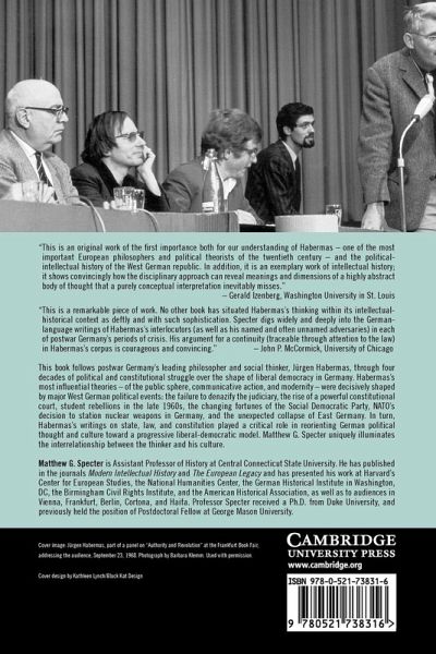 This book follows postwar Germany's leading philosopher and social thinker, Jürgen Habermas, through four decades of political and constitutional struggle over the shape of liberal democracy in Germany. Habermas's most influential theories - of the public sphere, communicative action, and modernity - were decisively shaped by major West German political events: the failure to de-Nazify the judiciary, the rise of a powerful Constitutional Court, student rebellions in the late 1960s, the changing fortunes of the Social Democratic Party, NATO's decision to station nuclear weapons, and the unexpected collapse of East Germany. In turn, Habermas's writings on state, law, and constitution played a critical role in reorienting German political thought and culture to a progressive liberal-democratic model. Matthew Specter uniquely illuminates the interrelationship between the thinker and his culture. This book follows postwar Germany's leading philosopher and social thinker, Jürgen Habermas, through four decades of political and constitutional struggle over the shape of liberal democracy in Germany. Here Habermas's writings on state, law, and constitution played a critical role, recasting German political thought and reorienting its political culture.