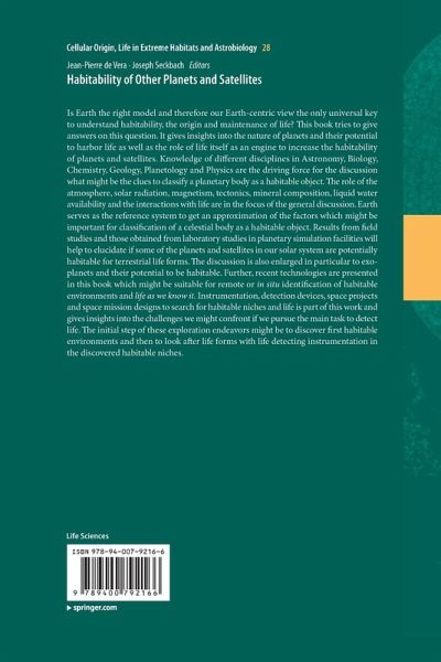 Is the Earth the right model and the only universal key to understand habitability, the origin and maintenance of life? Are we able to detect life elsewhere in the universe by the existing techniques and by the upcoming space missions? This book tries to give answers by focusing on environmental properties, which are playing a major role in influencing planetary surfaces or the interior of planets and satellites. The book gives insights into the nature of planets or satellites and their potential to harbor life. Different scientific disciplines are searching for the clues to classify planetary bodies as a habitable object and what kind of instruments and what kind of space exploration missions are necessary to detect life. Results from model calculations, field studies and from laboratory studies in planetary simulation facilities will help to elucidate if some of the planets and satellites in our solar system as well as in extra-solar systems are potentially habitable for life.