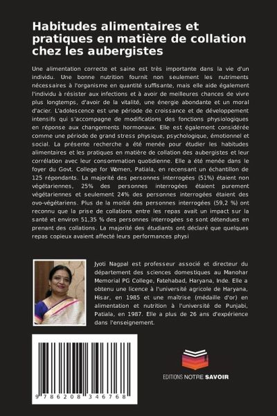 Une alimentation correcte et saine est très importante dans la vie d'un individu. Une bonne nutrition fournit non seulement les nutriments nécessaires à l'organisme en quantité suffisante, mais elle aide également l'individu à résister aux infections et à avoir de meilleures chances de vivre plus longtemps, d'avoir de la vitalité, une énergie abondante et un moral d'acier. L'adolescence est une période de croissance et de développement intensifs qui s'accompagne de modifications des fonctions physiologiques en réponse aux changements hormonaux. Elle est également considérée comme une période de grand stress physique, psychologique, émotionnel et social. La présente recherche a été menée pour étudier les habitudes alimentaires et les pratiques en matière de collation des aubergistes et leur corrélation avec leur consommation quotidienne. Elle a été menée dans le foyer du Govt. College for Women, Patiala, en recensant un échantillon de 125 répondants. La majorité des personnes interrogées (51%) étaient non végétariennes, 25% des personnes interrogées étaient purement végétariennes et seulement 24% des personnes interrogées étaient des ovo-végétariens. Plus de la moitié des personnes interrogées (59,2 %) ont reconnu que la prise de collations entre les repas avait un impact sur la santé et environ 51,35 % des personnes interrogées se sont détendues en prenant des collations. La majorité des étudiants ont déclaré que quelques repas copieux avaient affecté leurs performances physi