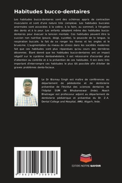 Les habitudes bucco-dentaires sont des schémas appris de contraction musculaire et sont d'une nature très complexe. Les habitudes buccales anormales sont associées à la colère, à la faim, au sommeil, à l'éruption des dents et à la peur. Les enfants adoptent même des habitudes bucco-dentaires pour évacuer la tension mentale. Ces habitudes peuvent être la succion non nutritive (pouce, doigt, sucette), la poussée de la langue, la respiration buccale, le fait de se ronger les lèvres et les ongles et le bruxisme. L'augmentation du niveau de stress dans les sociétés modernes fait que ces habitudes sont plus répandues qu'au cours des dernières décennies. Étant donné que les habitudes bucco-dentaires ont un impact négatif sur le système dentoalvéolaire, il est nécessaire d'accorder plus d'attention au contrôle et à la prévention de ces habitudes. Il est donc très important d'interrompre ces habitudes le plus tôt possible afin d'éviter de graves problèmes dento-faciaux.