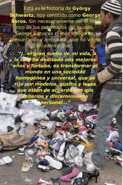 Esta es la historia de György Schwartz, hoy conocido como George Soros. Sin necesariamente ser el más rico de los potentados del mundo, George Soros es el más intrigante, presuntuoso y arrogante, que no vacila en admitir que... "... el gran sueño de mi vida, al cual he dedicado mis mejores años y fortuna, es transformar al mundo en una sociedad homogénea y universal, que se rija por modelos, gustos y leyes que estén de acuerdo con mis criterios y discernimiento personal..."