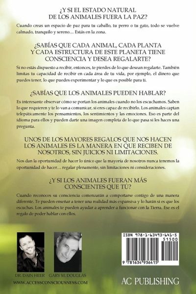 ¿Sabías que cada animal, planta y estructura de este planeta tiene consciencia y desea regalarte? Si no estás dispuesto a recibir, entonces, te pierdes de lo que ellos desean regalarte. También , limitas tu habilidad de recibir en cada área de tu vida, tales como el dinero que tienes, lo que ¡es posible para ti y las experiencias que puedes tener! ¿Y si la paz es el estado natural de los animales? Cuando creas o te conectas al espacio de paz por tu caballo, perro o gato, entonces todo se calma, se tranquiliza y es sereno... Estás en la zona. ¿Sabías que los animales pueden hablar? Es interesante observar como los animales tienen un mal comportamiento cuando no los escuchamos. Ellos saben lo que requieren y te lo van a comunicar, sea que estás dispuesto a recibir la información o no. Los animales tiene la habilidad de captar telepáticamente los pensamientos, sentimientos y emociones. Eso es parte del idioma de ellos y pueden darte la imagen completa de lo que está sucediendo, si les haces una pregunta. Unos de los mayores regalos que los animales nos dan es la manera en que reciben de nosotros sin juicio ni limitaciones. Nos dan la oportunidad de hacer lo único que la mayoría de nosotros nunca hemos hecho... regalar todo lo que tenemos sin limitaciones ni consideraciones. ¿Qué tal los animales son más conscientes que tú? Cuando reconoces su consciencia ellos comienzan a comportarse contigo de una manera diferente. Te pueden enseñar como tener una realidad más expansiva y lo van a hacer si es que los escuchas. Los animales también te pueden ayudar a funcionar con la Tierra. Ese es el regalo de aprender a hablar con ellos.