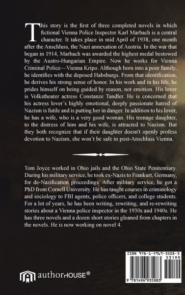 This story is the first of three completed novels in which fictional Vienna Police Inspector Karl Marbach is a central character. It takes place in mid April of 1938, one month after the Anschluss, the Nazi annexation of Austria. In the war that began in 1914, Marbach was awarded the highest medal bestowed by the Austro-Hungarian Empire. Now he works for Vienna Criminal Police—Vienna Kripo. Although born into a poor family, he identifies with the deposed Habsburgs. From that identification, he derives his strong sense of honor. In his work and in his life, he prides himself on being guided by reason, not emotion. His lover is Volkstheater actress Constanze Tandler. He is concerned that his actress lover’s highly emotional, deeply passionate hatred of Nazism is futile and is putting her in danger. In addition to his lover, he has a wife, who is a very good woman. His teenage daughter, to the distress of him and his wife, is attracted to Nazism. But they both recognize that if their daughter doesn't openly profess devotion to Nazism, she won’t be safe in post-Anschluss Vienna.