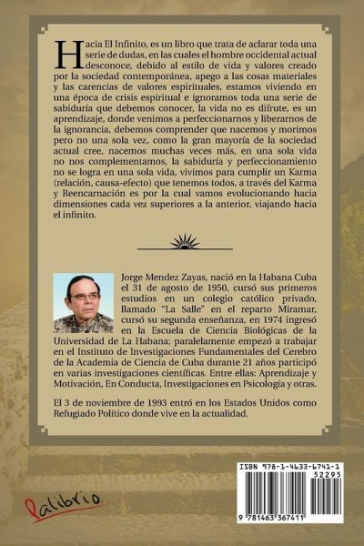 Hacia El Infinito, es un libro que trata de aclarar toda una serie de dudas, en las cuales el hombre occidental actual desconoce, debido al estilo de vida y valores creado por la sociedad contemporánea, apego a las cosas materiales y las carencias de valores espirituales, estamos viviendo en una época de crisis espiritual e ignoramos toda una serie de sabiduría que debemos conocer, la vida no es difrute, es un aprendizaje, donde venimos a perfeccionarnos y liberarnos de la ignorancia, debemos comprender que nacemos y morimos pero no una sola vez, como la gran mayoría de la sociedad actual cree, nacemos muchas veces más, en una sola vida no nos complementamos, la sabiduría y perfeccionamiento no se logra en una sola vida, vivimos para cumplir un Karma (relación, causa-efecto) que tenemos todos, a través del Karma y Reencarnación es por la cual vamos evolucionando hacia dimensiones cada vez superiores a la anterior, viajando hacia el infinito.
