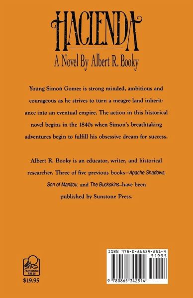 Young Simon Gomez is strong minded, ambitious and courageous as he strives to turn a meager land inheritance into an eventual empire. The action in this historical novel begins in the 1840s when Simon's breathtaking adventures begin to fulfill his obsessive dream for success. Albert R. Booky is an educator, writer, and historical researcher. He is also the author of "Apache Shadows," "Son of Manitou," and "The Buckskins," all from Sunstone Press.