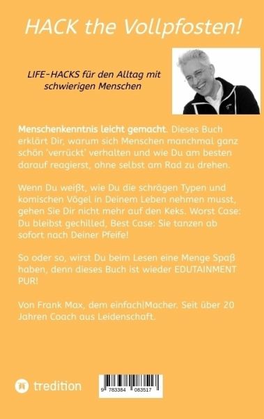 "Menschen gibt's, die gibt's nicht!" Möchte man zumindest meinen. Doch leider gibt es sie nicht nur, sie machen uns auch regelmäßig das Leben schwer. Beim Amt, im Supermarkt und auf der Straße. Ich habe da was gegen, also: "Im übertragenen Sinne". Denn nach der Lektüre dieses Buchs siehst Du Vollpfosten, Meckeronkels & Co. nicht nur in einem anderen Licht, sondern hast auch den einen oder anderen Pfeil mit Gegengift im Köcher. Ich erkläre, warum Menschen manchmal schwierig werden und sind und was man tun kann, wenn man mit ihnen zu tun hat und mit heiler Haut davonkommen möchte.