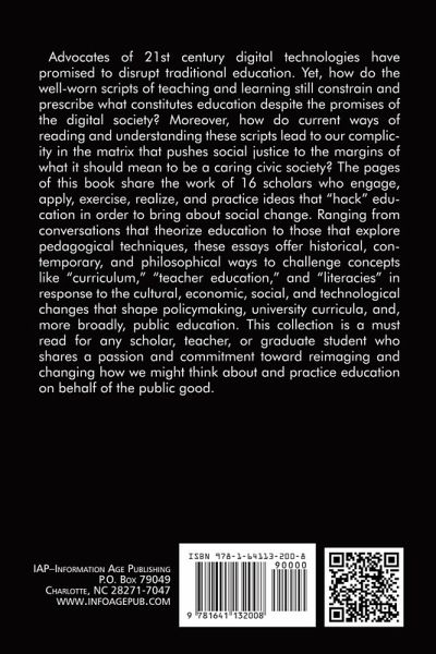 In this collection, the authors put forth different philosophical conceptions of "hacking education" in response to the educational, societal, and technological demands of the 21st century. Teacher Educators are encouraged to draw on the collection to rethink how "hacking education" can be understood simultaneously as a "praxis" informed by desires for malice, as well as a creative site for us to reconsider the possibilities and limitations of teaching and learning in a digital era. How do we hack beyond the limits of circumscribed experiences, regulated subjective encounters with knowledge and the limits imposed by an ever constrained 21st century schooling system in the hopes of imagining better and more meaningful futures? How do we foster ingenuity and learning as the end itself (and not learning as economic imperative) in a world where technology, in part, positions individuals as zombie-like and as an economic end in itself? Can we "hack" education in such a way that helps to mitigate the black hat hacking that increasingly lays ruin to individual lives, government agencies, and places of work? How can we, as educators, facilitate the curricular and pedagogical processes of reclaiming the term hacking so as to remember and remind ourselves that hacking’s humble roots are ultimately pedagogical in its very essence? As a collection of theoretical and pedagogical pieces, the chapters in the collection are of value to both scholars and practitioners who share the same passion and commitment to changing, challenging and reimagining the script that all too often constrains and prescribes particular visions of education. Those who seek to question the nature of teaching and learning and who seek to develop a richer theoretical vocabulary will benefit from the insightful and rich collection of essays presented in this collection. In this regard, the collection offers something for all who might wish to rethink the fundamental dynamics of education or, as Morpheus asks of Neo in The Matrix, bend the rules of conventional ways of knowing and being.