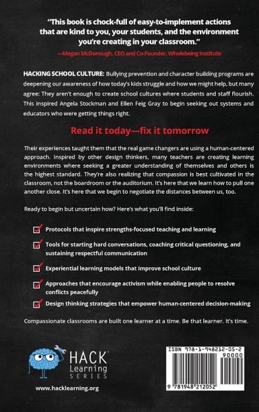 If you could teach all kids empathy, tolerance, and compassion, wouldn't teaching all things be easier? Bullying prevention and character building programs are deepening our awareness of how today's kids struggle and how we might help, but many agree: They aren't enough to create school cultures where students and staff flourish. This inspired Angela Stockman and Ellen Feig Gray to begin seeking out systems and educators who were getting things right. Read it today-fix it tomorrow Their experiences taught them that the real game changers are using a human-centered approach. Inspired by other design thinkers, many teachers are creating learning environments where seeking a greater understanding of themselves and others is the highest standard. They're also realizing that compassion is best cultivated in the classroom, not the boardroom or the auditorium. It's here that we learn how to pull one another close. It's here that we begin to negotiate the distances between us, too. Ready to begin but uncertain how? Here's what you'll find inside: Protocols that inspire strengths-focused teaching and learning Tools for starting hard conversations, coaching critical questioning, and sustaining respectful communication Experiential learning models that improve school culture Approaches that encourage activism while enabling people to resolve conflicts peacefully Design thinking strategies that empower human-centered decision-making Compassionate classrooms are built one learner at a time. Be that learner. It's time.
