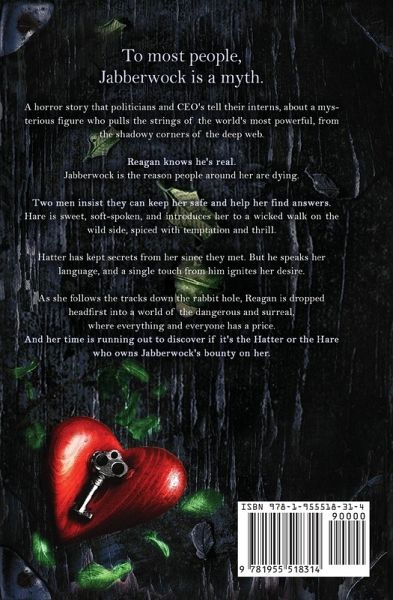To most people, Jabberwock is a myth. A horror story that politicians and CEO's tell their interns, about a mysterious figure who pulls the strings of the world's most powerful, from the shadowy corners of the deep web. Reagan knows he's real. Jabberwock is the reason people around her are dying. Two men insist they can keep her safe and help her find answers. Hare is sweet, soft-spoken, and introduces her to a wicked walk on the wild side, spiced with temptation and thrill. Hatter has kept secrets from her since they met. But he speaks her language, and a single touch from him ignites her desire. As she follows the tracks down the rabbit hole, Reagan is dropped headfirst into a world of the dangerous and surreal, where everything and everyone has a price. And her time is running out to discover if it's the Hatter or the Hare who owns Jabberwock's bounty on her.