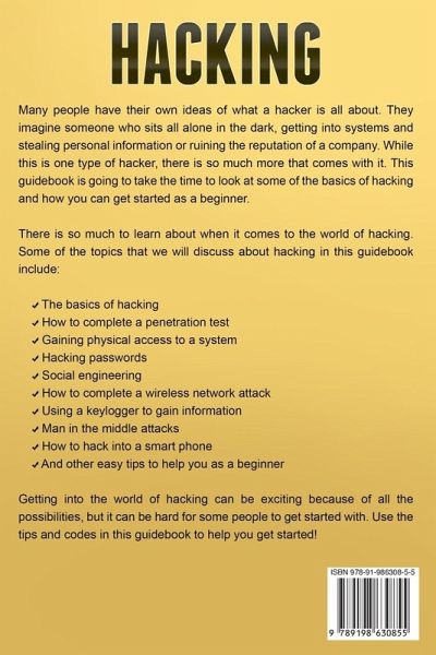 Do you want to become a hardcore hacker? Knowing how to hack is a super valuable skill. It's useful in almost any field of work and any company. It's said that hacking is for geeks, but that's all a myth. This book, Book 1 in the Hacking For Beginners Series presents hacking in a serious and fun way. It includes: The basics of hacking How to complete a penetration test Gaining physical access to a system Hacking passwords Social engineering How to complete a wireless network attack Using a keylogger to gain information Man-in-the-middle attacks How to hack into a smartphone And other easy tips to help you as a beginner Are you ready to become a hacker? You can start now.