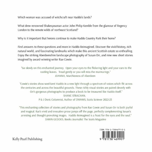 Haddo Reimagined is an exciting collaboration between short fiction writer Rae Cowie, and photographer Susan Orr. Focusing their lens on the ancient Scottish estate of Haddo Country Park, they discovered forgotten stories, secret places, as well as the exceptional flora and fauna that make the Aberdeenshire Park so special. Research of the area lead them to ask - 'Which woman was accused of witchcraft near Haddo's lands?' and 'Why is it important that herons continue to make Haddo Country Park their home?' - just two of the questions answered in stories that delve into the park's vivid history, rich natural world and tales behind some of its well-known landmarks. A specially designed Haddo Reimagined map encourages readers to discover the inspiration behind the stories by following the icons around the park. Joanna, Marchioness of Aberdeen invites readers to 'Go slowly on this enchanted journey.' Shane Strachan, Doric columnist with the Press & Journal, says 'Cowie's stories show weel-kent Haddo in a new light through a spectrum of voices which flit across the centuries and across the beautiful grounds. These richly visual stories are paired cleverly with Orr's gorgeous photographs to produce a book to be treasured like Haddo itself.'