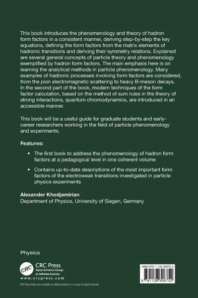 This book introduces the theory of hadron form factors in a consistent manner, deriving step-by-step the key equations, defining the form factors, explaining their symmetry relations and applying mathematical tools to describe their behaviour. It is an ideal guide for graduate students studying particle physics and researchers.