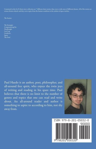 Contained in this Sci-Fi short story collection are 7 different short stories, that cover a wide array of different themes. All of the stories are science fiction related, and they cover topics from the human condition to the realities of space warfare. The Stories: The Strategist Compromising Sin Deadweight Last Log Lionheart Spore The Duel