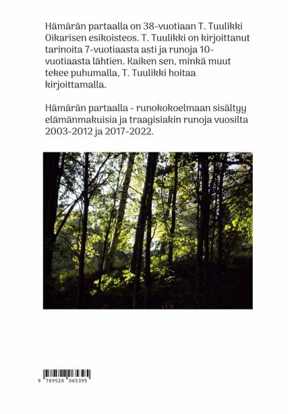 Hämärän partaalla on 38-vuotiaan T. Tuulikki Oikarisen esikoisteos. T. Tuulikki on kirjoittanut tarinoita 7-vuotiaasta asti ja runoja 10-vuotiaasta lähtien. Kaiken sen, minkä muut tekee puhumalla, T. Tuulikki hoitaa kirjoittamalla. Hämärän partaalla - runokokoelmaan sisältyy elämänmakuisia ja traagisiakin runoja vuosilta 2003-2012 ja 2017-2022.