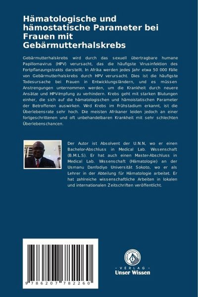 Gebärmutterhalskrebs wird durch das sexuell übertragbare humane Papillomavirus (HPV) verursacht, das die häufigste Virusinfektion des Fortpflanzungstrakts darstellt. In Afrika werden jedes Jahr etwa 50 000 Fälle von Gebärmutterhalskrebs durch HPV verursacht. Dies ist die häufigste Todesursache bei Frauen in Entwicklungsländern, und es müssen Anstrengungen unternommen werden, um die Krankheit durch neuere Ansätze und HPV-Impfung zu verhindern. Krebs geht mit starken Blutungen einher, die sich auf die hämatologischen und hämoistatischen Parameter der Betroffenen auswirken. Wird Krebs im Frühstadium erkannt, ist die Überlebensrate sehr hoch. Die meisten Afrikaner leiden jedoch an einer fortgeschrittenen und oft unbehandelbaren Krankheit mit sehr schlechten Überlebenschancen.