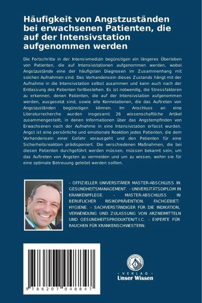 Die Fortschritte in der Intensivmedizin begünstigen ein längeres Überleben von Patienten, die auf Intensivstationen aufgenommen werden, wobei Angstzustände eine der häufigsten Diagnosen im Zusammenhang mit solchen Aufnahmen sind. Das Vorhandensein dieses Zustands hängt mit der Aufnahme in die Intensivstation selbst zusammen und kann auch nach der Entlassung des Patienten fortbestehen. Es ist notwendig, die Stressfaktoren zu erkennen, denen Patienten, die auf der Intensivstation aufgenommen werden, ausgesetzt sind, sowie alle Konnotationen, die das Auftreten von Angstzuständen begünstigen können. Im Anschluss an eine Literaturrecherche wurden insgesamt 26 wissenschaftliche Artikel zusammengestellt, in denen Informationen über das Angstempfinden von Erwachsenen nach der Aufnahme in eine Intensivstation erfasst wurden. Angst ist eine persönliche und emotionale Reaktion jedes Patienten, die dem Vorhandensein einer Gefahr vorausgeht und den Patienten für eine Sicherheitsreaktion prädisponiert. Die verschiedenen Maßnahmen, die bei diesen Patienten durchgeführt werden müssen, müssen bekannt sein, um das Auftreten von Ängsten zu vermeiden und um zu wissen, wohin sie für eine optimale Betreuung geleitet werden sollten.