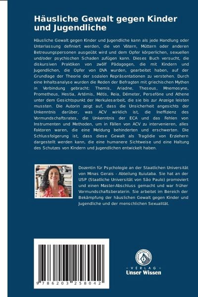 Häusliche Gewalt gegen Kinder und Jugendliche kann als jede Handlung oder Unterlassung definiert werden, die von Vätern, Müttern oder anderen Betreuungspersonen ausgeübt wird und dem Opfer körperlichen, sexuellen und/oder psychischen Schaden zufügen kann. Dieses Buch versucht, die diskursiven Praktiken von zwölf Pädagogen, die mit Kindern und Jugendlichen, die Opfer von DVA wurden, gearbeitet haben, auf der Grundlage der Theorie der sozialen Repräsentationen zu verstehen. Durch eine Inhaltsanalyse wurden die Reden der Befragten mit griechischen Mythen in Verbindung gebracht: Themis, Ariadne, Theseus, Mnemosyne, Prometheus, Hestia, Artémis, Métis, Reia, Démeter, Persefóne und Athene unter dem Gesichtspunkt der Herkulesarbeit, die sie bis zur Anzeige leisten mussten. Die Autorin zeigt auf, dass die Unsicherheit angesichts der Unkenntnis darüber, was ACV wirklich ist, die Ineffizienz des Vormundschaftsrates, die Unkenntnis der ECA und das Fehlen von Instrumenten und Methoden, um in Fällen von ACV zu intervenieren, alles Faktoren waren, die eine Meldung behinderten und erschwerten. Die Schlussfolgerung ist, dass diese Gewalt als Tragödie von Erziehern dargestellt werden kann, die eine humanere Sichtweise und eine Haltung des Schutzes von Kindern und Jugendlichen entwickelt haben.