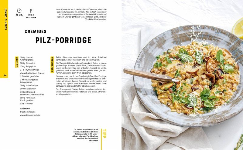 Auf 128 Seiten werden nachhaltige Alternativen zu Weizen und Milchprodukten aus Hafer angeboten, und dabei sind alle Rezepte ohne Industriezucker! Die über 50 gesunden Rezepte mit Hafer reichen von süßen und herzhaften Porridges und Overnight Oats, über Hafer-Dinkel-Pizza, Mushroom-Hafertoast oder Süßkartoffel-Lauch-Gratin, bis hin zu veganen Chocolate Flapjacks, nussigen Cookies und natürlich verschiedenen Müsli- und Granola-Mischungen. Somit ist für jeden etwas dabei!