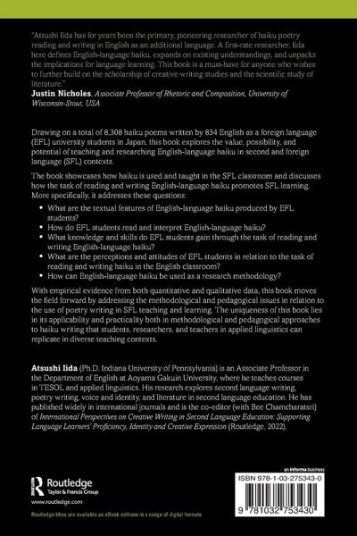 Drawing on a total of 8,308 haiku poems written by 834 English as Foreign Language (EFL) university students in Japan, this book explores the value, possibility, and potential of teaching and researching English-language haiku in second and foreign language (SFL) contexts.