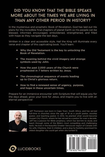 Did you know that the Bible speaks more about the times we are living in than any other period in history? In the mysterious and prophetic Book of Revelation, God has laid out His plans for the incredible final chapters of planet Earth so His people can be blessed, informed, encouraged, emboldened, strengthened, and filled with hope as they navigate the last days. Written in a clear and accessible style, Hail the King will illuminate every verse and chapter of this captivating book. You'll learn: ¿ Why the Old Testament is the key to unlocking the Book of Revelation. ¿ The meaning behind the vivid imagery and strange symbols used by John. ¿ How the past 2,000 years of the Church were prophesied in 7 letters written by Jesus. ¿ The chronological sequence of events leading up to Christ's glorious return. ¿ How to find a renewed sense of urgency, purpose, and hope in these uncertain times. Prepare for an immersive encounter with Scripture that will equip you for the days ahead, grow your love for Jesus, and inspire you to live with an eternal perspective!