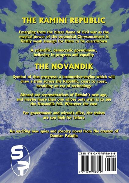 The Ramini Republic. Emerging from the bitter flame of civil war as the magical power of the tyrannical Chrysomancers is finally weak enough for them to be overthrown. A scientific, democratic government, believing in progress and equality The Novandik Symbol of that progress: a locomotive-engine which will draw a train across the Republic, coast to coast, heralding an era of technology. Aboard are representatives of Ramini's new age, and maybe more than one whose only wish is to see the Novandik fail. Whatever the cost. For government and wizards alike, the stakes are too high for failure