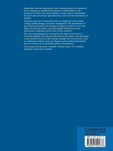 This photographic atlas aids correct identification by providing data on the colour, form and length of hair and the structure of the cuticula, medulla and cross-sections. Identification is also aided by the provision of keys.