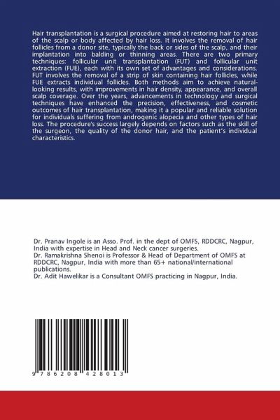 Hair transplantation is a surgical procedure aimed at restoring hair to areas of the scalp or body affected by hair loss. It involves the removal of hair follicles from a donor site, typically the back or sides of the scalp, and their implantation into balding or thinning areas. There are two primary techniques: follicular unit transplantation (FUT) and follicular unit extraction (FUE), each with its own set of advantages and considerations. FUT involves the removal of a strip of skin containing hair follicles, while FUE extracts individual follicles. Both methods aim to achieve natural-looking results, with improvements in hair density, appearance, and overall scalp coverage. Over the years, advancements in technology and surgical techniques have enhanced the precision, effectiveness, and cosmetic outcomes of hair transplantation, making it a popular and reliable solution for individuals suffering from androgenic alopecia and other types of hair loss. The procedure's success largely depends on factors such as the skill of the surgeon, the quality of the donor hair, and the patient's individual characteristics.