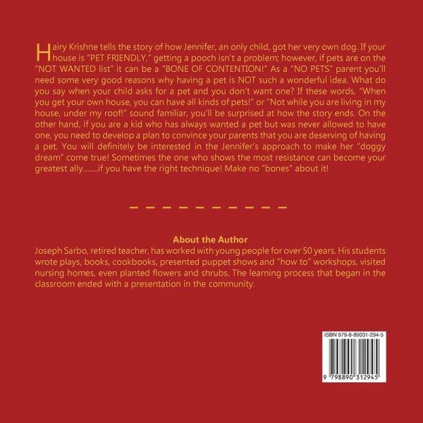 Hairy Krishne tells the story of how Jennifer, an only child, got her very own dog. If your house is "PET FRIENDLY," getting a pooch isn't a problem; however, if pets are on the "NOT WANTED list" it can be a "BONE OF CONTENTION!" As a "NO PETS" parent you'll need some very good reasons why having a pet is NOT such a wonderful idea. What do you say when your child asks for a pet and you don't want one? If these words, "When you get your own house, you can have all kinds of pets!" or "Not while you are living in my house, under my roof!" sound familiar, you'll be surprised at how the story ends. On the other hand, if you are a kid who has always wanted a pet but was never allowed to have one, you need to develop a plan to convince your parents that you are deserving of having a pet. You will definitely be interested in the Jennifer's approach to make her "doggy dream" come true! Sometimes the one who shows the most resistance can become your greatest ally.......if you have the right technique! Make no "bones" about it!