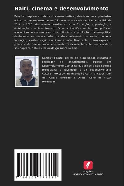 Este livro explora a história do cinema haitiano, desde os seus primórdios até ao seu renascimento e declínio. Analisa o estado do cinema no Haiti de 2010 a 2020, destacando desafios como a formação, a produção, a distribuição e o financiamento. O autor identifica os factores políticos, económicos e socioculturais que dificultam a produção cinematográfica, destacando as necessidades de desenvolvimento do sector, como a formação, a estruturação e o financiamento. Finalmente, o livro explora o potencial do cinema como ferramenta de desenvolvimento, destacando o seu papel na cultura e na mudança social no Haiti.