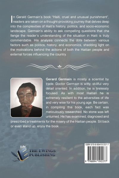 In Gerald Germain's book "Haiti, cruel and unusual punishment", readers are taken on a thought-provoking journey that delves deep into the complexities of Haiti's history, politics, and socio-economic landscape. Germain's ability to ask compelling questions that challenge the reader's understanding of the situation in Haiti is truly commendable. His analysis connects the dots between various factors such as politics, history, and economics, shedding light on the motivations behind the actions of both the Haitian people and external forces influencing the country.