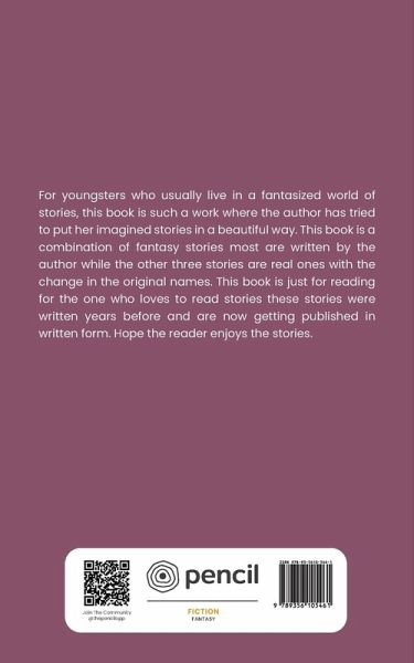 For youngsters who usually live in a fantasized world of stories, this book is such a work where the author has tried to put her imagined stories in a beautiful way. This book is a combination of fantasy stories most are written by the author while the other three stories are real ones with the change in the original names. This book is just for reading for the one who loves to read stories these stories were written years before and are now getting published in written form. Hope the reader enjoys the stories.