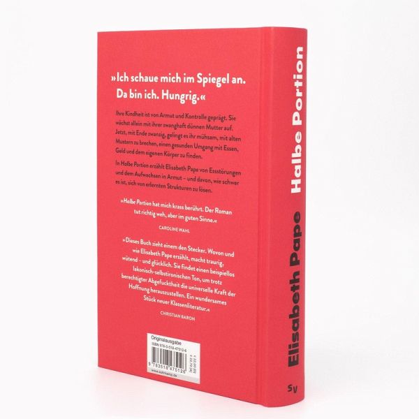 In Halbe Portion erzählt Elisabeth Pape eine ganz persönliche Geschichte über Essstörungen, das Aufwachsen in Armut und die damit einhergehenden Zwänge. Der Roman zeigt, warum es für Betroffene so schwer ist, mit erlernten Strukturen zu brechen und einen gesunden Umgang mit Essen und Geld zu finden. Und er spürt der Frage nach, wie uns Familie trägt, aber auch erdrückt.