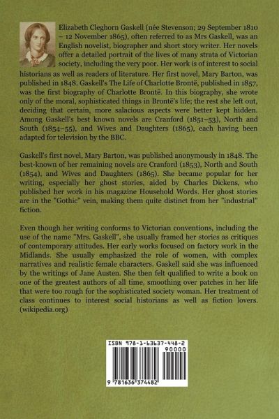 Elizabeth Cleghorn Gaskell (née Stevenson; 29 September 1810 - 12 November 1865), often referred to as Mrs Gaskell, was an English novelist, biographer and short story writer. Her novels offer a detailed portrait of the lives of many strata of Victorian society, including the very poor. Her work is of interest to social historians as well as readers of literature. Her first novel, Mary Barton, was published in 1848. Gaskell's The Life of Charlotte Brontë, published in 1857, was the first biography of Charlotte Brontë. In this biography, she wrote only of the moral, sophisticated things in…mehr
