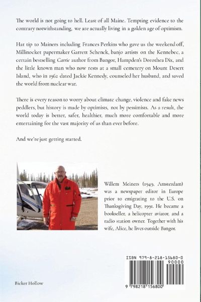 The world is not going to hell. Least of all Maine. Tempting evidence to the contrary notwithstanding, we are actually living in a golden age of optimism. Hat tip to Mainers including thank-you-for-the-weekend Frances Perkins, Millinocket papermaker Garrett Schenck, banjo artists on the Kennebec, a certain bestselling Carrie author from Bangor, Hampden's Dorothea Dix, and the little known man who now rests at a small cemetery on Mount Desert Island, who in 1962 dated Jackie Kennedy, counseled her husband, and saved the world from nuclear war. There is every reason to worry about climate change, violence and fake news peddlers, but history is made by optimists, not by pessimists. As a result, the world today is better, safer, healthier, more comfortable and more entertaining for the vast majority of us than ever before. And we're just getting started.