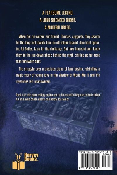 A fearsome legend. A long silenced ghost. A modern greed. When her co-worker and friend, Thomas, suggests they search for the long-lost jewels from an old island legend, dive boat operator, AJ Bailey, is up for the challenge. But their innocent hunt leads them to the run-down shack behind the myth, stirring up far more than timeworn dust. The struggle over a precious piece of land begins, rekindling a tragic story of young love in the shadow of World War II and the mysteries left unanswered. Book 11 in this best-selling series set in the beautiful Cayman Islands takes AJ on a wild chase above and below the water. Read in series order or as stand-alone novels.