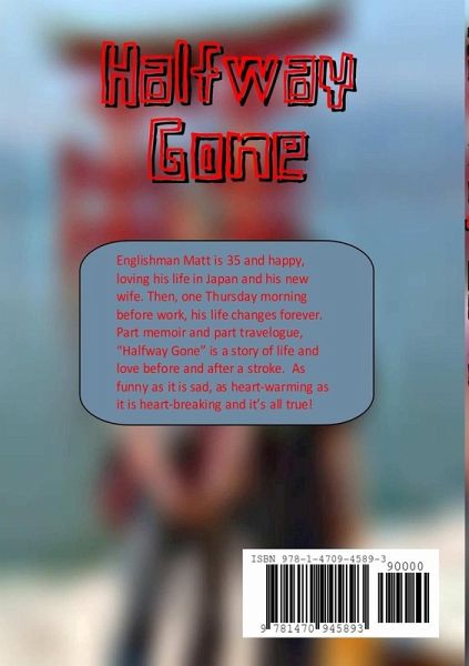 Englishman Matt is 35 and happy, loving his life in Japan and his new wife. Then, one Thursday morning, his life changes forever. Part memoir and part travelogue "Halfway Gone" is a story of life and love before and after a stroke. As funny as it is sad, as heart-warming as it is heart-breaking and it's all true!