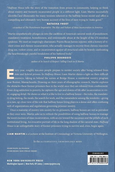 An inside look at the struggles former prisoners face in reentering society Every year, roughly 650,000 people prepare to reenter society after being released from state and federal prisons. In Halfway House, Liam Martin shines a light on their difficult journeys, taking us behind the scenes at Bridge House, a residential reentry program near Boston, Massachusetts. Drawing on three years of research, Martin explores the obstacles these former prisoners face in the real world. From drug addiction to poverty, he captures the ups and downs of life after incarceration in vivid, engaging detail. He shows us what, exactly, it is like to live in a halfway house, giving us a rare, up-close view of its role in a dense and often confusing web of organizations governing prisoner reentry. Martin asks us to rethink the possibilities-and pitfalls-of using halfway houses to manage the worst excesses of mass incarceration. A portrait of life in the long shadow of the carceral state, Halfway House lets us see the struggles of reentry through the eyes of former prisoners.