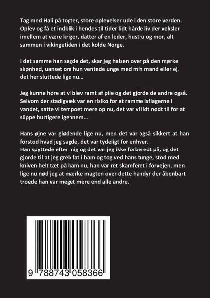 Tag med Hali på hende rejse gennem det hårde vikinge og krigerliv hun udlever. Vær med på hendes mange togter og rejser til ukendte og farlige steder. Oplev hendes liv med togter, familie og mange børn. Kærlighed og krige, angreb og det daglige liv i bygden Tronhjem i Norge. Hali er bog 6 i serien Astrid, Ask og Roar.