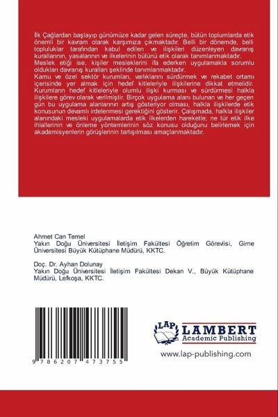 ¿lk Çälardan bälay¿p günümüze kadar gelen süreçte, bütün toplumlarda etik önemli bir kavram olarak kar¿¿m¿za ç¿kmaktad¿r. Belli bir dönemde, belli topluluklar taraf¿ndan kabul edilen ve ili¿kileri düzenleyen davran¿¿ kurallar¿n¿n, yasalar¿n¿n ve ilkelerinin bütünü etik olarak tan¿mlanmaktad¿r.Meslek eti¿i ise, ki¿iler mesleklerini ifa ederken uygulamakla sorumlu olduklar¿ davran¿¿ kurallar¿ ¿eklinde tan¿mlanmaktad¿r. Kamu ve özel sektör kurumlar¿, varl¿klar¿n¿ sürdürmek ve rekabet ortam¿ içerisinde yer almak için hedef kitleleriyle ili¿kilerine dikkat etmelidir. Kurumlar¿n hedef kitleleriyle olumlu ili¿ki kurmas¿ ve sürdürmesi halkla ili¿kilere görev olarak verilmi¿tir. Birçok uygulama alan¿ bulunan ve her geçen gün bu uygulama alanlar¿n¿n art¿¿ gösteriyor olmas¿, halkla ili¿kilerde etik konusunun devaml¿ irdelenmesi gerekti¿ini gösterir. Çal¿¿mada, halkla ili¿kiler alan¿ndaki mesleki uygulamalarda etik ilkelerden hareketle; ne tür etik ilke ihlallerinin ve önleme yöntemlerinin söz konusu oldu¿unu belirlemek için akademisyenlerin görü¿lerinin tart¿¿¿lmas¿ amaçlanmaktad¿r.
