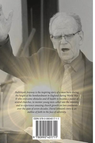 Hallelujah Anyway is the biography of David Johnson: beloved husband, father, and pastor. Hallelujah Anyway traces the Christian conversion of an Englishman who became an evangelist, American citizen, and eventually a pastor in Virginia (USA). Written from the perspective of his lovely wife, Jean Johnson.