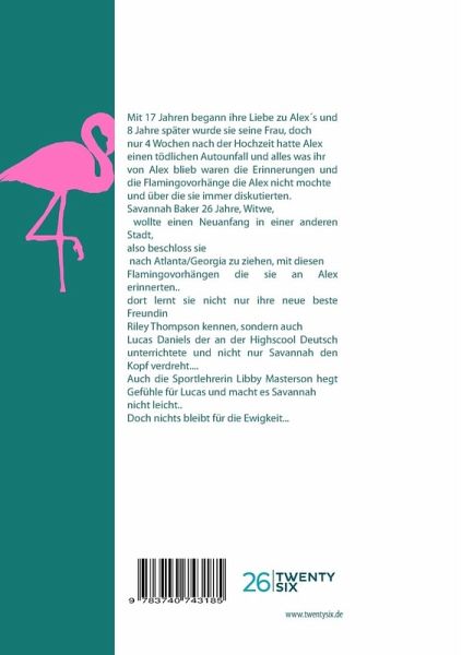 Mit 17 Jahren begann ihre Liebe zu Alex's und 8 Jahre später wurde sie seine Frau, doch nur 4 Wochen nach der Hochzeit hatte Alex einen tödlichen Autounfall, und alles was ihr von Alex blieb, waren die Erinnerungen und die Flamingovorhänge, die Alex nicht mochte und über die sie immer diskutierten.Savannah Baker 26 Jahre, Witwe, wollte einen Neuanfang in einer anderen Stadt, also beschloss sie nach Atlanta/Georgia zu ziehen, mit diesen Flamingovorhängen, die sie an Alex erinnerten. Dort lernt sie nicht nur ihre neue beste Freundin Riley Thompson kennen, sondern auch Lucas Daniels, der an der Highschool Deutsch unterrichtete und nicht nur Savannah den Kopf verdreht ...Auch die Sportlehrerin Libby Masterson hegt Gefühle für Lucas und macht es Savannah nicht leicht. Doch nichts bleibt für die Ewigkeit ...