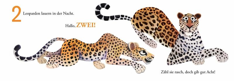 Ein buntes Buch, das mitwächst: Die lebhaft bunten Seiten bringen den Kleinsten den Zahlenraum bis zwölf näher. Im Nachwort des Autors werden die einzigartigen Tiere näher vorgestellt und wertvolles Sachwissen zum Thema Artenschutz vermittelt. So bietet das Buch auch älteren Kindern und Vorlesenden spannende Informationen über die vielfältige Welt der Tiere.