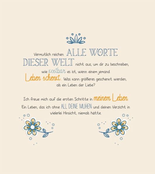 Ein kleines Buch, mit 24 Seiten, voller Herz und Liebe.Der Weg einer Schwangerschaft ist sowohl wunderschön, wie auch besonders. Es gibt viele Momenteder Freude, viel Neues und viel Veränderung. Der Körper einer Frau leistet Höchstarbeit - und diesdarf große Wertschätzung erfahren.Dieses kleine Buch handelt von einer Unterhaltung, die das Baby aus dem Bauch der Mutter mit ihrführt - voller Vorfreude auf das Leben. Ein einzigartiges Babyparty Geschenk, eines der liebevollstenGeschenke für Schwangere und eines der gefühlvollsten Geschenke für werdende Mütter. Voller Liebebedankt es sich bei seiner Mutter für alles, was ihm bislang geschenkt wurde und noch geschenkt wird.Hallo, Mama... Ein Buch, das vielen Lesern bereits Tränen der Freude schenkte. Sind Sie bereit für eineReise in eine Welt voller Gefühl? Dann sind Sie bei diesem Buch genau richtig, denn es handelt sichum eines der einzigartigsten Geschenke für werdende Mütter. Geschrieben wurde das Buch für diebeste Freundin des Autors, welche eine schwierige Schwangerschaft erlebte zu der Zeit. Ihr sollte dasBuch Kraft und Wertschätzung schenken. Liebevolle Worte ihres Kindes, an sie gerichtet, dankend fürdiese 10 Monate der Fürsorge. Der Beginn des Mutter-Seins. Schon bald wurde klar, dieses Buch wirdin einer Welt voller Geschenke für Schwangere viele Mütter erreichen - egal ob von großen oderkleinen Kindern - weil JEDE Mama SO wertvoll ist.Auf jeder Babyparty das schönste Werdende Mama Geschenk. Ideal als Geschenk für Schwangere undGeschenk für werdende Mütter. Das beste Babyparty Geschenk und Schwangerschaft Geschenk fürwerdende Mutter.